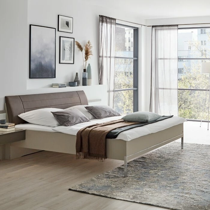 - Inklusive Polsterkopfteil in Lederoptik havanna
