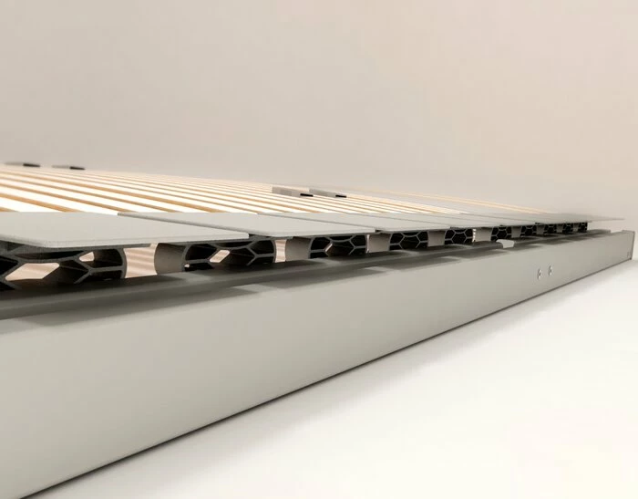 - Mit 40 hochwertigen Federholzleisten, aufliegend, patentiertes Federsystem unterstützt den ergonomischen Schlaf. In der Schulterzone erzeugt die ERGO-GUIDE Technologie, in Kombination mit Leisten auf der Oberseite, eine äußerst punktelastische Anpassung