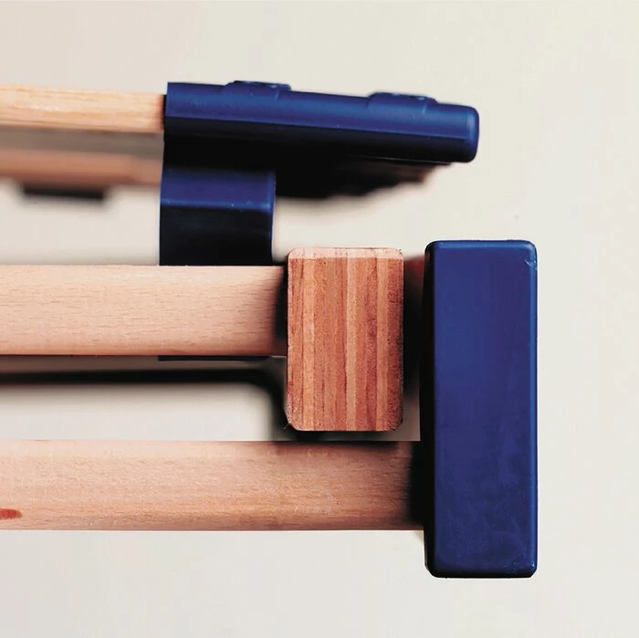 - Längsholme aus Schichtholz, Querholme aus massiver Buche