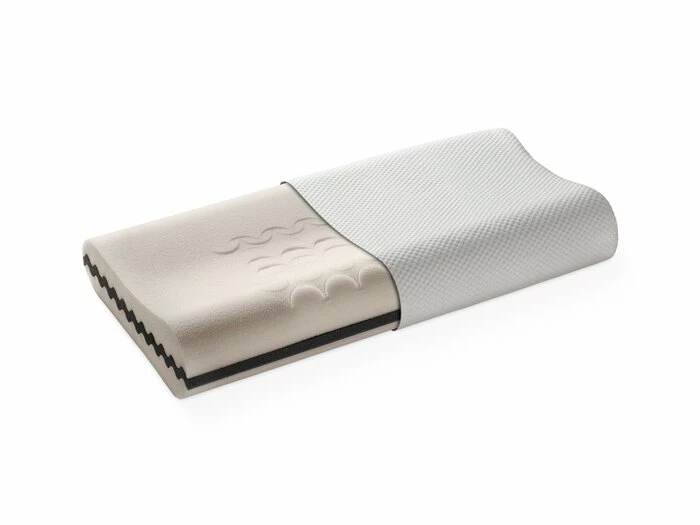 - Aquapur-Kissen mit einem der Nackenlinie angepasstem Formkern aus hochwertigem Aquapur-Schaum im Sandwichaufbau